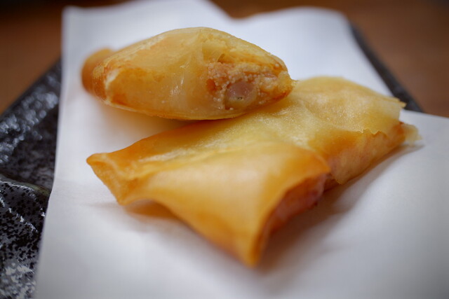 荒く刻んだ海老に餅と合わせた春巻きは意外性があり、プチプチ食感の魚卵も入っていた。