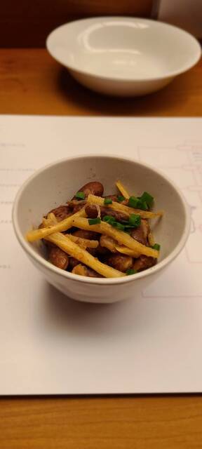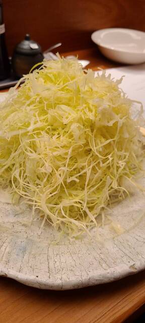 いよいよコースがスタートとすると、最初におかわりも出来る清涼感に溢れ、青臭さの一切ない甘みを感じる山盛りのキャベツが出てきます。