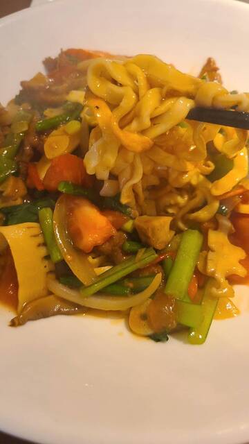 「担々麺」も四川料理のイメージから、辛さと痺れを想像するかもしれませんが、ごまのクリーミーさや挽き肉や松の実などの旨味や香ばしさに溢れています。麺はゆるめの細麺です。