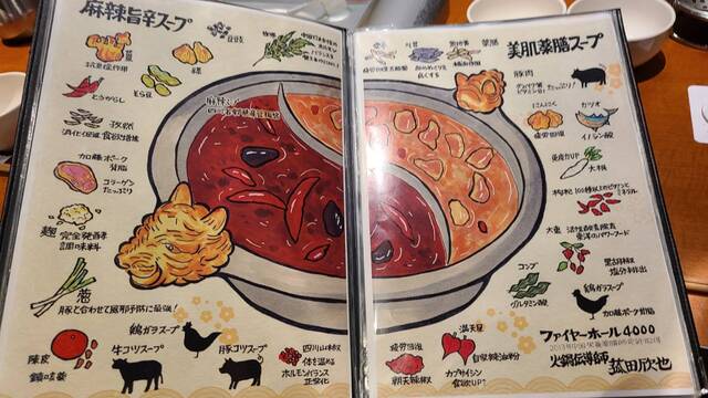 話を戻して『ファイヤーホール4000』のお薦めは「張飛コース 麻辣スープ/薬膳スープ3,980円」です。