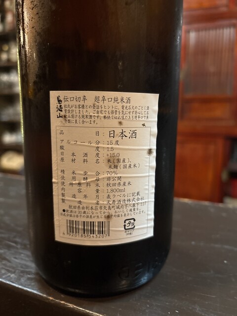 横手市は舞鶴酒造の山廃純米「田从(たびと)」酸味が効いてるが後から旨みが湧き上がる感じ。