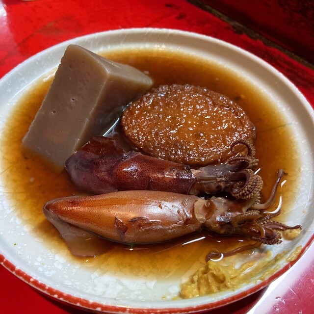 おでんはあるもので見繕ってもらいにおぶ、厚揚げ、はんぺん、そして1ヶ月煮込む殻付き卵。
