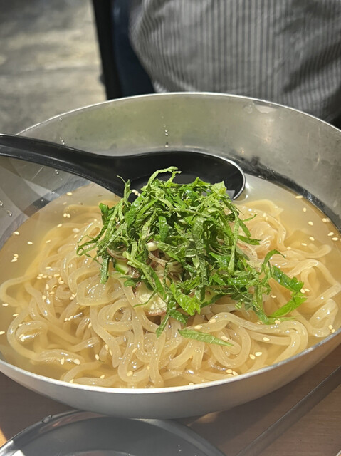 しめに冷麺も気になっていたので頼んでみました、盛岡冷麺みたいに太い腰のある冷麺です。いつも裏切らないお肉の味わいに感動。またいきたいお店の一つですこの値段でこのクオリティのお肉が食べられるお店は少ないと思います。