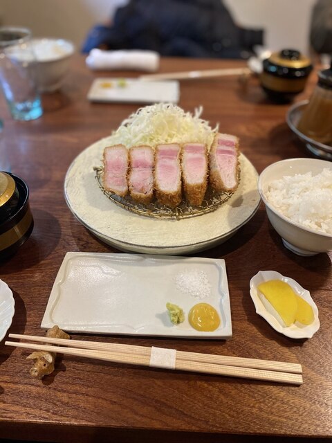 絶妙な火入れでのレアとんかつ