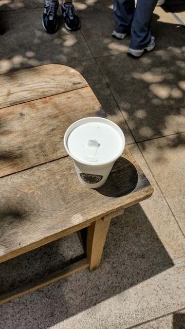 この日はいつも購入しているブリコラージュブレッド1/4 をテイクアウトすることにして、本日のコーヒーM を店内でいただきました。この日のお豆はフグレンのエチオピア。注文やお会計はお席が確保できてからのため、あらかじめ待ち人リストに記名して待ち、その後に注文お会計を済ませ、受け取って席を利用しました。