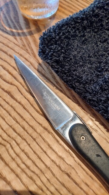 こだわりのナイフ。シェフ執筆の書籍の記載によれば、定期的に研いでいるそう。キレがいいとお料理が引き立ちますよね☆ 大切に使い込まれていて素敵と思う