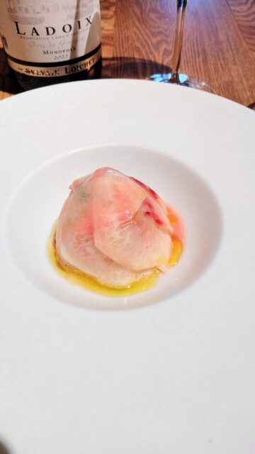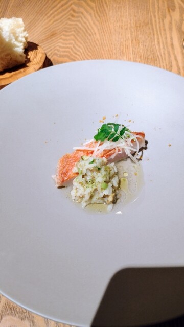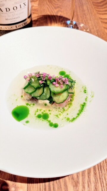 この日はお料理に合う白ワインを選んでいただきました。ドイツワインだそうで、フルーティーでもあり美味しかったです♡ ソムリエさんが私を覚えていて下さったのも、素直にとても嬉しかったです