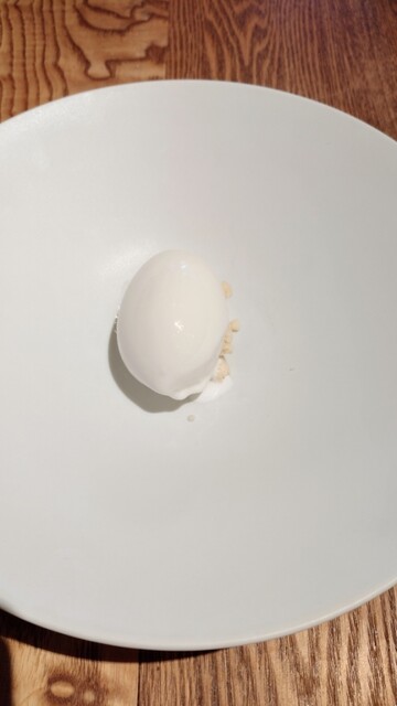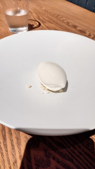 ブリアサバランミルクジェラート。ほろほろクランブル舌触り、チーズのコク。出来立てで提供されてすぐに口どけるほどやわらかなテクスチャも、すごくよく考えられていて素晴らしい☆ これも美味しかったな~♡