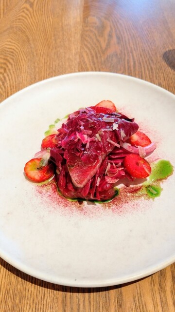 2. 自家製ラスク馬肉タルタルビーツのサラダ