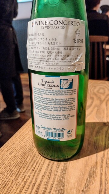 アラカルト白ワイン(スペインバスク近郊レモンのようなフレッシュなミネラル感微炭酸)