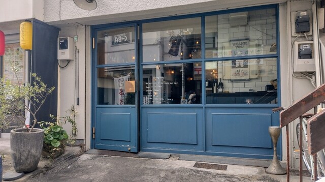 ひっそり隠れ家的な外観。ネイビー好きな鳥羽さんらしい雰囲気もいいですね(^^)