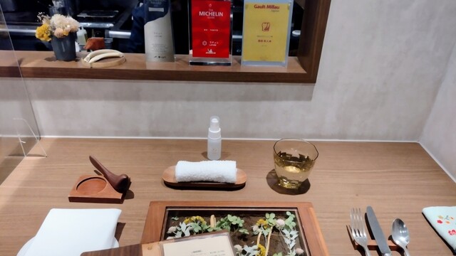 この日のメインの選択肢は鹿か鴨(京都七谷鴨)か牛、あるいは猪(イノシシ)とのお話。鴨と猪で迷いさらにお話伺ったところ、鴨はこの後しばらく食べられる一方猪は一旦この時期頃まで次は秋だそうで猪でお願いしました。亀のお料理はご用意いただけること伺い喜びつつ、他のお皿はおまかせで何が出るかワクワクお待ちします。
