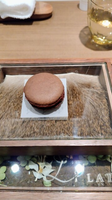 卵白の代わりに鹿の血使がわれたマカロン。甘じょっぱい味わいでコクあり、けど血っぽくはあまり感じなかったような(^^) 赤ワインが進みそうな味わい、次は赤ワインスタートしようかしら