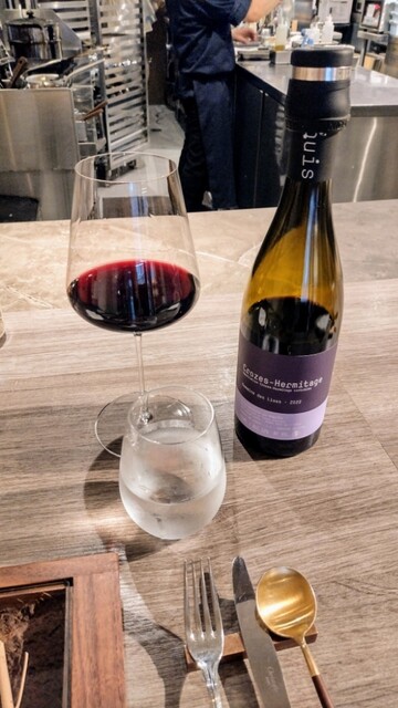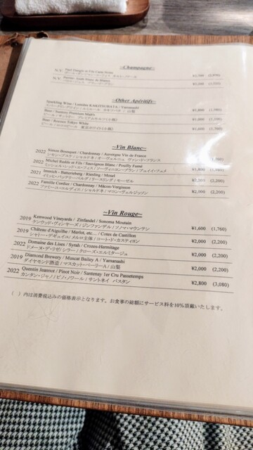 ドリンクメニューからワインを選んでスタートです。いつもながらシェフがご挨拶にいらして下さりありがたいです。(お客様皆さまのお席に同じくご挨拶にいらっしゃっています)