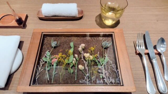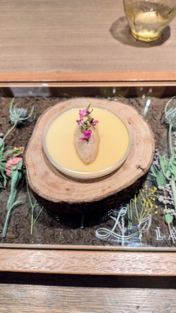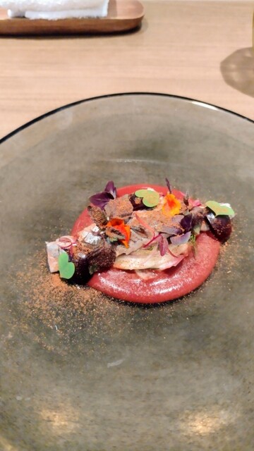 いただきたいジビエがありまして、やはりジビエといえばこちらでしょうと期待して予約しました。リクエストはしていたものの、仕入れのタイミングにより難しい日もあると思っていましたが。当日はじめにシェフがご説明下さり、希望していた鳩のお料理いただけるとのこと。楽しみにコーススタートしました☆