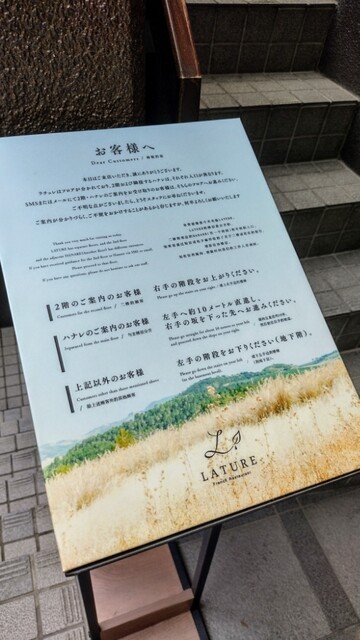 帰り際に、夏の時期はとうもろこしと鮎のお料理が楽しめますよとお話伺いました。なるほど確かに、ラチュレといえばジビエとはじめは思っていましたが、何度かお食事してみると他のお料理も美味しいのですよね。アミューズも前菜も、パイ包み焼きのお料理もいつも美味しいですし。