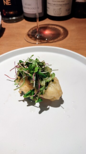お店は夜のアラカルトの方が人気な側面ありますが、私はもっぱらランチなので、この日もおまかせランチコースでスタートです。webで見たボトルの写真で気になっていたスパーリングを少なめでお願いしました。