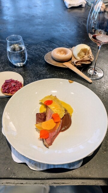 • もちろんお肉もしっとり美味しかった一方で付け合せの舞茸ガレットに正直心奪われたお皿です。舞茸の旨み、さわやかな仕上がりの松茸と根セロリサラダも素晴らしかったです。