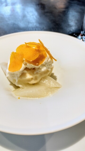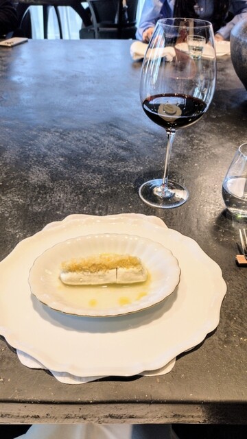 • ギリシャの品種アシルティコのオーストラリアのワイン。コースに合わせて1杯とお願いするとやっぱり白ワインになるわね。次はやっぱり赤がいいかなと思いつつ、白ワイングラスでいただけたから良かった(^^)