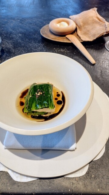 • 清水牧場バッカスチーズのニョッキ豆乳フランごぼうのポタージュスープ。根セロリサラダおからのシートで巻いて山椒花ピクルス添え。途中でお口直しできてあらためて美味しいをやり直せちゃいました☆