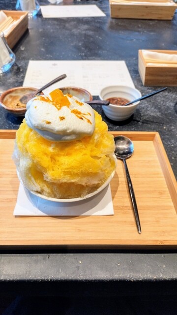 メインに大鳩排を楽しみにしているので、他の注文はお野菜系を。あと、裏リレージュといえば食べ逃せないかき氷お願いしました。