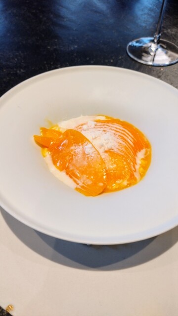 • アミューズのさつま芋のお料理。2口くらいでなくなってしまうのですけど、印象的で美味しく可愛らしい♡