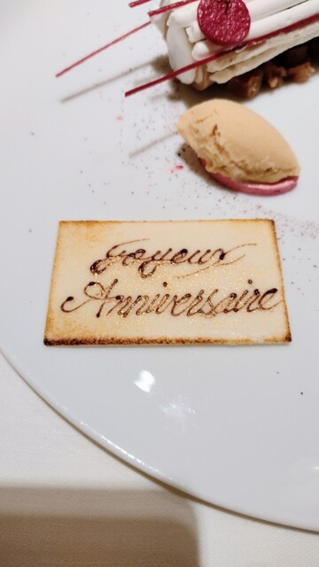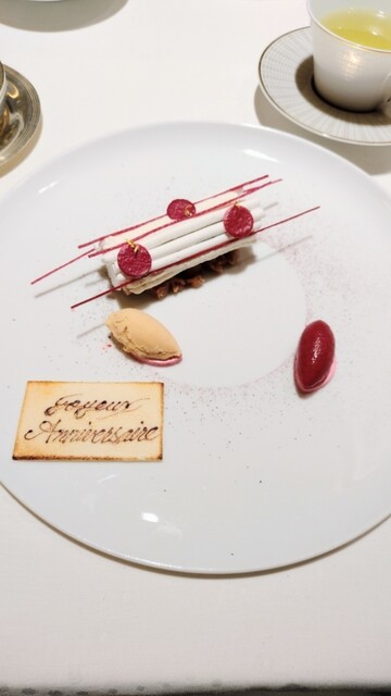 この日もお料理すべて美しく美味しかったです。中でも特に印象的だったのは、鳩のメインお料理とデセールのマロンのパルフェ。まず鳩のメインお料理は、まさか鳩がメニューにあると思っていなかったのと、いただきたい気持ちが高まっていたのでタイミング良かったです。鳩の部位それぞれ異なるお料理になって美しくお皿に並び、ひと品ごと異なる味わいが楽しめました☆