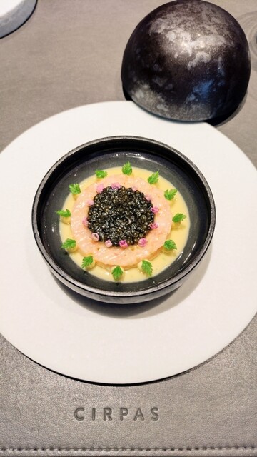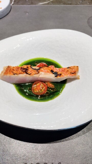 キャビアの乗せられたフランのお料理は、いろいろなところ(SNSなど)の写真や動画で見ていて気になっていて。私も丸いドーム型の蓋を開けてみたいなとか、ほんと私SNS見過ぎですよね(笑) 実際いただいてみて、フランにコンソメジュレ、タルタルにキャビアですから、もう間違いないですね☆ 素敵です! 季節ということでフランがこの日は枝豆でして、他の要素に埋もれずちゃんと活きていて夏の名残りが楽しめたのも良かったです。