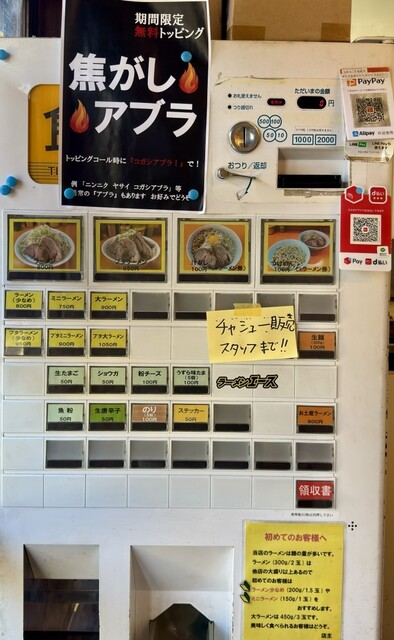 券売機は、現金のみだけど