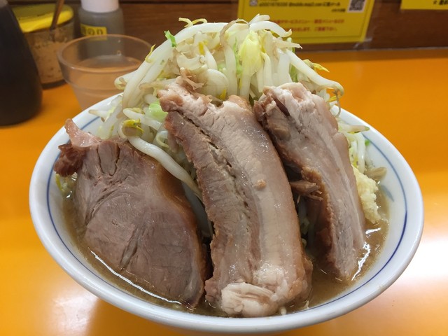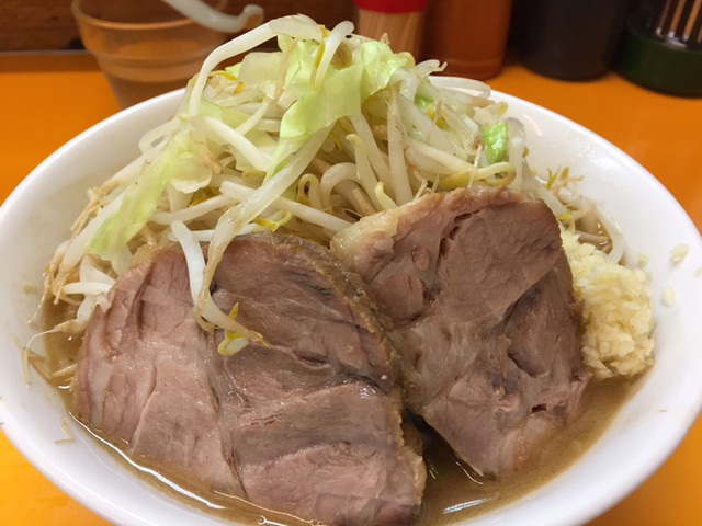 無料トッピングは、ニンニク少し、ヤサイ、アブラ