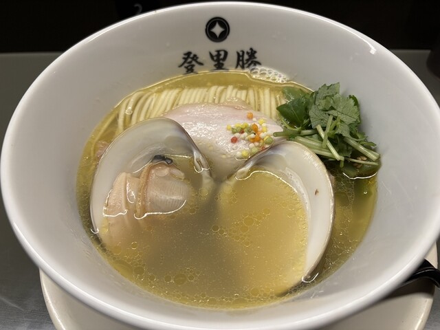 巨大なはまぐりと透き通ったスープ。歯応えのある山クラゲ、柔らかいチャーシューと自家製の平打ちのストレート中太麺。弾力があり喉越しもよくて、どれも完璧。久しぶりにスープを飲み干しましたが、あっさりしていて美味しかった。