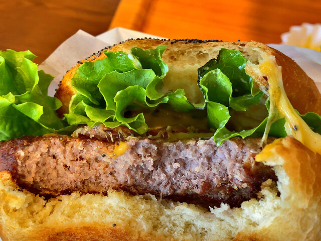 せっかくなので、パティのサイズをアップしたら、とんでもないボリュームのパティが鎮座しています。
