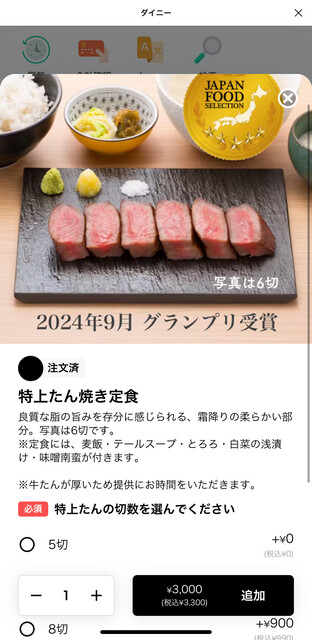 特上タン焼き定食6切れ 3,300円