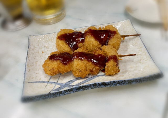 ボリュームある"鳥唐揚げ"、"串かつ"の揚げ物2品と続きます。