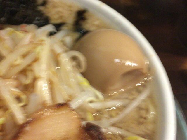 追加トッピングの煮玉子は塩分の味しかわからない程度の味付。おそらくニンニクで既に舌がバカになっているんだなと想像。