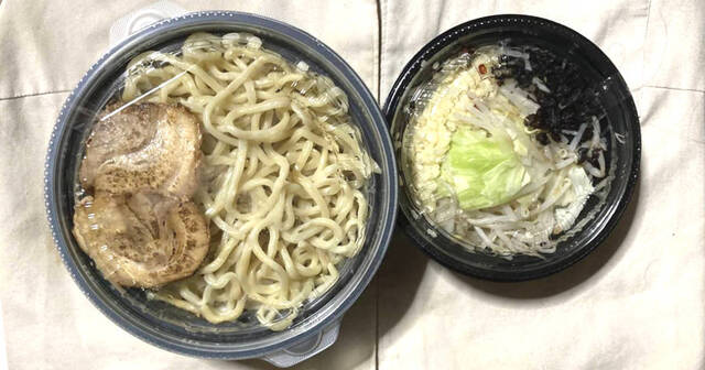 麺と具材盛りつけてからレンチンするとデカ豚ラーメンみたいな野菜の食感になってしまう。