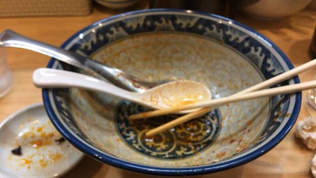 スープ底の煮干しの細かな粒の辺りは残しましたけど画像取り忘れ。