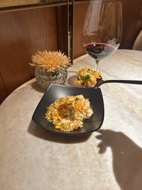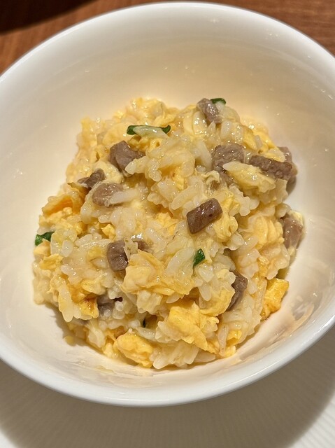 締めの和牛ひき肉ととろとろ卵の炒飯は、あんかけ仕立てでまろやか。コースの終盤でありながら重さを感じさせず、最後まで丁寧に計算された構成が印象的でした。