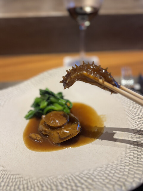 旨みが詰まった乾鮑と、プルンとしたナマコの組み合わせが贅沢。
