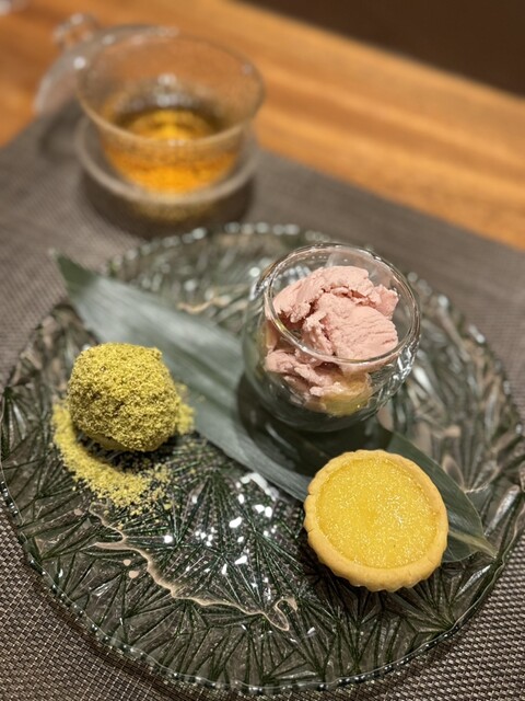 ピスタチオの白玉団子には、くるみやいちじく、ピーナッツが忍ばされており、香ばしさと自然な甘みが余韻として残る、まさに“大人の甘味”。なめらかでクリーミーな苺アイスと香ばしい生地に、卵のコクと優しい甘さが印象的な香港式エッグタルトも素晴らしかったです。