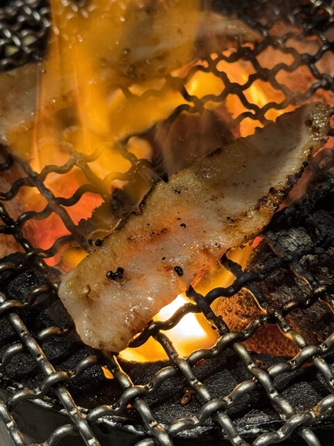 ワイルドな噛みごたえと濃厚な脂がクセになる。炭火との相性も抜群で、香ばしさが引き立ちます。