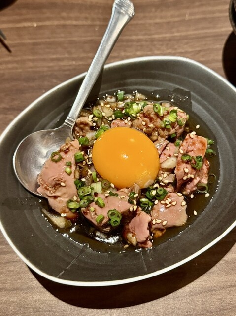 低温調理されたレバーは、驚くほど臭みがなく、卵黄と絡めることでコクとねっとり感が際立ちます。思わず日本酒が進む逸品。