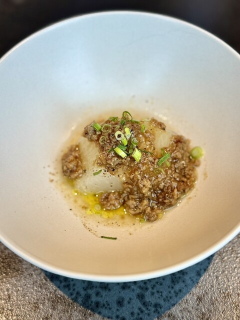 優しい大根の旨みと、発酵肉味噌の力強い味が対比的で、記憶に残る組み合わせでした。
