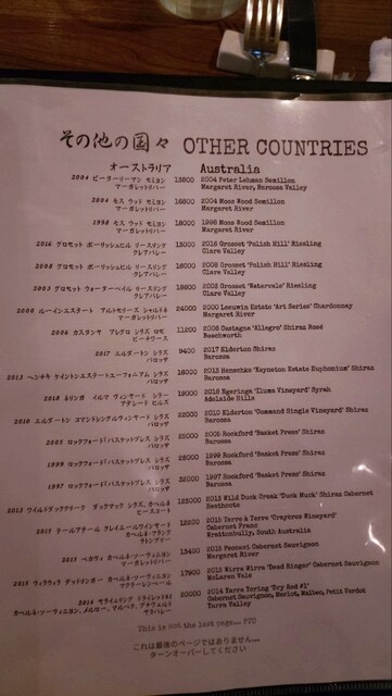 ワインは、ワインリストから以下を選び、どれも上質でさすが美味しかったです♪