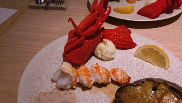 青森のイセエビは、若干レアで柔らかく、これはアンチョビとブラックオリーブを主体としたバーニャソースと合って、レモンも掛け絶品でした♪