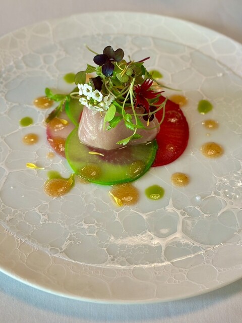 お料理はどれも美しく飾られ、神経の張り詰めたような皿が出てきます。