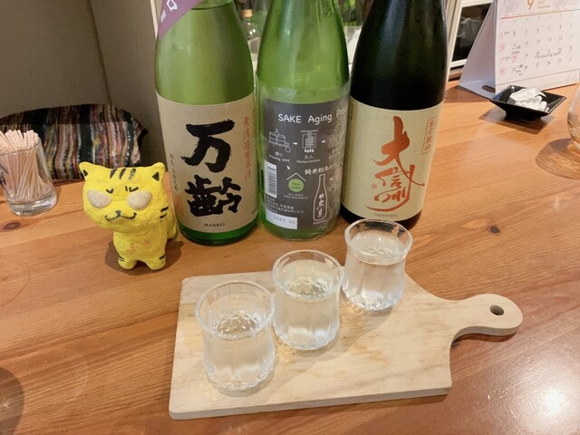 かっしゃんは、店の方のお任せ、3種飲み比べ650円(税込)