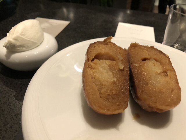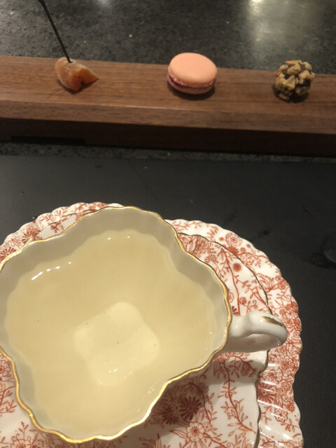 私がソースアルビュフェラ食べたことないから食べてみたいんですよねというと、それと、ミルクレープとビスクも食べたほうが良いとのことで、それも織り込んでもらって、メインは鴨というのでサルミソースでリクエスト。