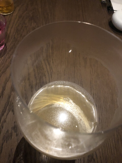 ビスクから続く濃厚ソースに合わせて、スタッフのお姉さん曰く、「フランスの間違いなく美味しいシャルドネ」を1.5杯ほどいただきましたが、本当においしい。。