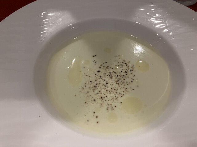 里芋のソースに合わせるのは土っぽさとかけて赤ワイン、渋みが穏やかになって飲みやすくて序盤の赤なのにスイスイ飲めちゃう。
